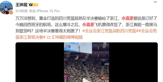 打四川男篮自曝没想过能赢!余嘉豪博客节目曝今晚缺席全运会决赛